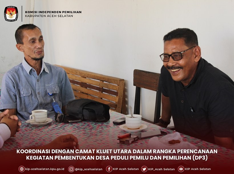 KIP Kabupaten Aceh Selatan Melakukan Koordinasi dengan Camat Kluet Utara Dalam Rangka Perencanaan Kegiatan Pembentukan Desa Peduli Pemilu dan Pemilihan (DP3), Kamis (30/06)#KPUMelayani#PemiluSerentak2024