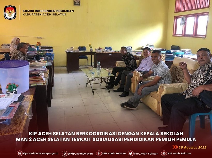 #TemanPemilih, KIP Aceh Selatan melaksanakan koordinasi dengan MAN 2 Aceh Selatan Terkait sosialisasi pendidikan pemilih kepada pemilih pemula