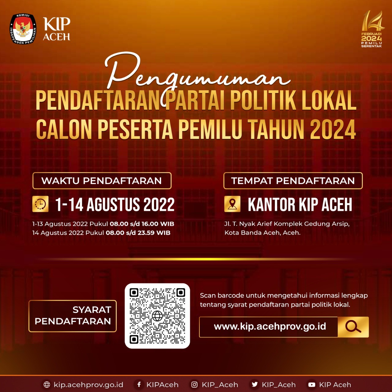 Pengumuman Pendaftaran Partai Politik Lokal Calon Peserta Pemilu Tahun 2024