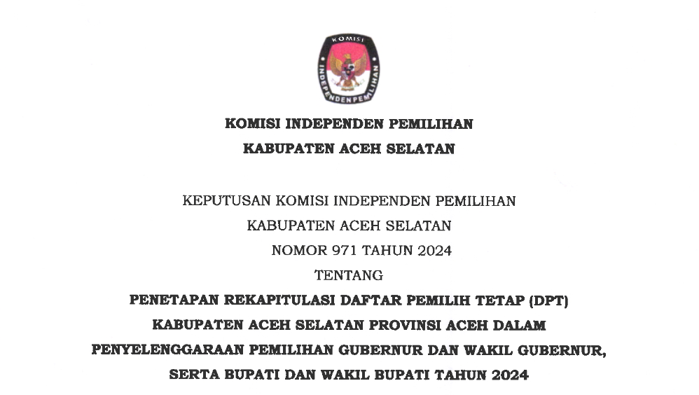 Berikut kami informasikan Daftar DPT Kabupaten Aceh Selatan pada Pilkada Serentak Tahun 2024