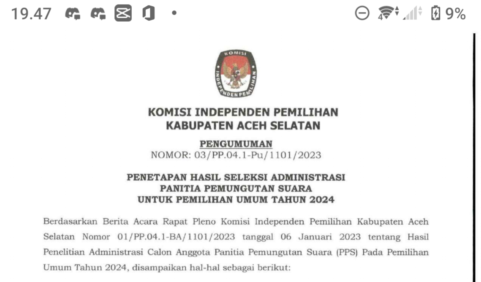 Pengumuman Hasil Seleksi Administrasi PPS Minggu, 08 Januari 2023 07:00 797 Berikut Hasil Seleksi Administrasi PPS Download Bagikan: Dilihat 797 Kali.