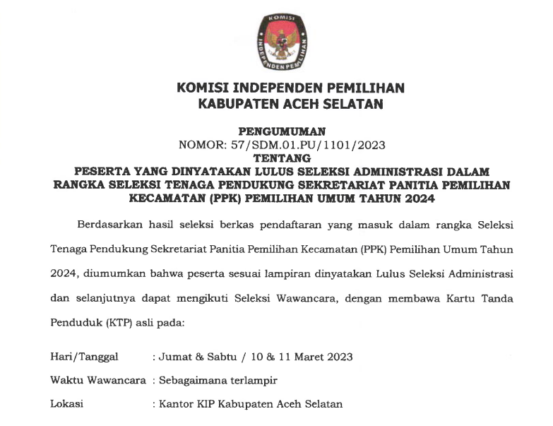 Informasi pengumuman dapat dilihat pada lampiran dokuman dibawah ini
