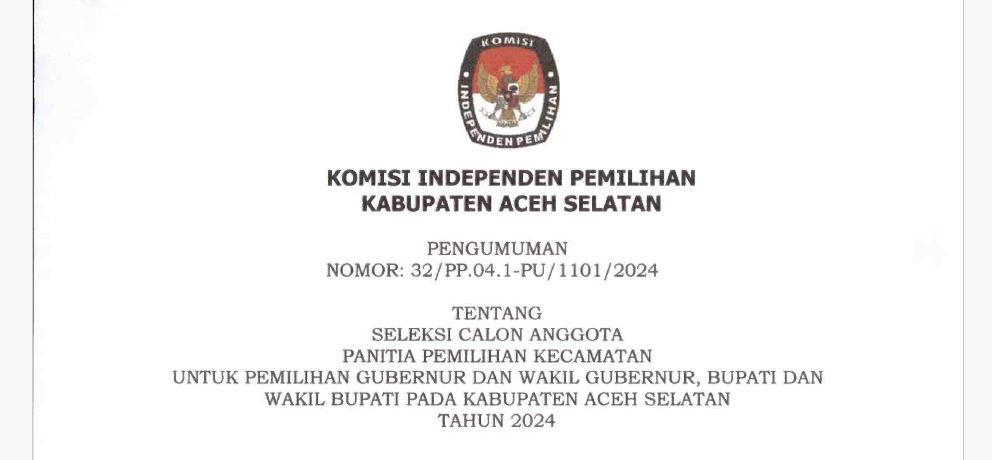 Pengumuman Seleksi Calon Anggota Panitia Pemilihan Kecamatan Pilkada 2024
