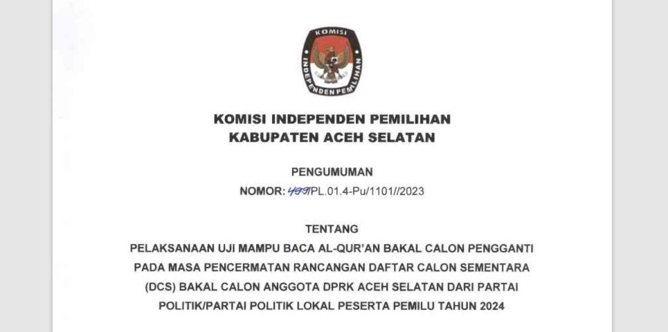PENGUMUMAN UJI MAMPU BACA AL-QUR'AN PADA MASA PENCERMATAN DCS Rabu, 09 Agustus 2023 10:00 475 Dokumen dapat di downoad pada disini! DOWNLOAD Bagikan: Dilihat 475 Kali.